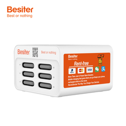 Bester 6-Khe Cắm Cho Thuê Stackable Không Thấm Nước Nhanh Chóng Sạc 65W 8000MAh Ngân Hàng Điện Máy Bán Hàng Tự Động Điện Thoại Di Động Sạc Trạm